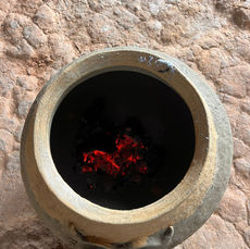 Once dry, the pot will be fired in an open shuntu fire using traditional firing techniques.